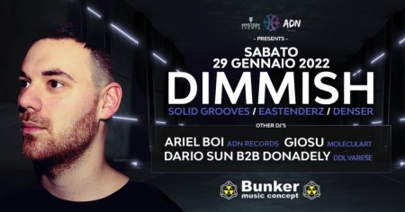 LUGANO - Sabato 29 gennaio a partire dalle ore 20 al Bunker Club di via Trevano a Lugano Mystery Events e ADN Records, in collaborazione con DDL Varese, presentano Dimmish.
