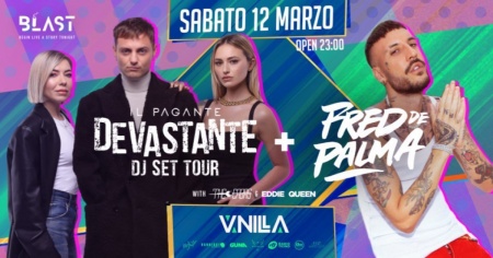 RIAZZINO - Un party esplosivo attende, a partire dalle 23 di sabato 12 marzo, i frequentatori del Vanilla Club di Riazzino. Sarà infatti il momento di Blast, organizzato da North South e con protagonisti principali Il Pagante e Fred De Palma.