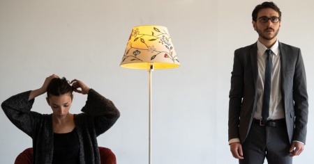 Si tratta del debutto della compagnia vincitrice del bando testinscena 2022 della Fondazione Claudia Lombardi per il teatro. Una giovane coppia costretta ad abbandonare le proprie aspirazioni personali in virtù di quello che a lungo andare diventa un inganno sterile: il matrimonio. La rottura di questo meccanismo morboso si palesa un giorno, dal niente, e si chiama Amore, carnale e voluttuoso che sposta per sempre la stabilità acquisita a fatica negli anni. Giostra racconta un triangolo amoroso: un marito, una moglie, un’amante. È una storia piena di cliché, di ripetizioni, e su queste si snoda: ogni volta che la scena riparte, si aggiungono piccole differenze, che sommate portano lentamente il testo alla deriva. Ed ecco che una storia assolutamente prevedibile, gradualmente assume contorni paradossali, agghiaccianti, crudeli. O forse no, perché tutto cambia, tranne il male che riusciamo a farci.