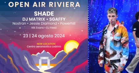 A chiudere la due giorni sarà Shade. Il rapper e doppiatore torinese sarà pronto per offrire al pubblico di Open Air Riviera tutte le hit del suo repertorio. Da "La hit dell'estate" a "Bene ma non benissimo", da "Autostop" fino alla più recente "Dire fare baciare", in coppia con Elettra Lamborghini.