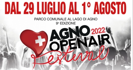 AGNO - Si terrà da domani, venerdì 29 luglio, fino a lunedì 1° agosto la nona edizione di Agno Open Air Festival dal 29 luglio. L'evento è organizzato al parco comunale Al Lago dal Comune di Agno, Raiffeisen, La Mobiliare e 4it Solution, con la direzione artistica di Temus Club.