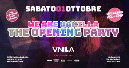 RIAZZINO - Sabato 1° ottobre ha ufficialmente inizio la nuova stagione del Vanilla Club di Riazzino. Si comincia alle 23.30 con "We Are Vanilla - The Opening Party", che servirà per far ambientare i frequentatori della discoteca più acclamata della Svizzera Italiana.