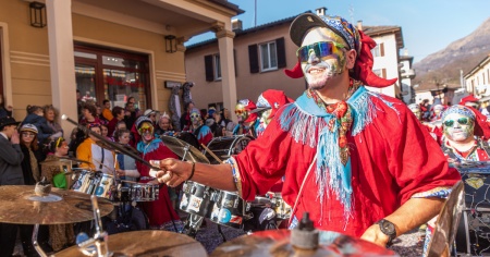 Procedendo verso sud, è invece tempo di maschere a Lodrino, dove l'appuntamento è per sabato a partire dalle 15 nello stabile ex vetreria. I festeggiamenti del Carnevale Barocc includono una cena a base di risotto, luganiga o paella (per cui bisogna prenotarsi) e tanta musica in compagnia.