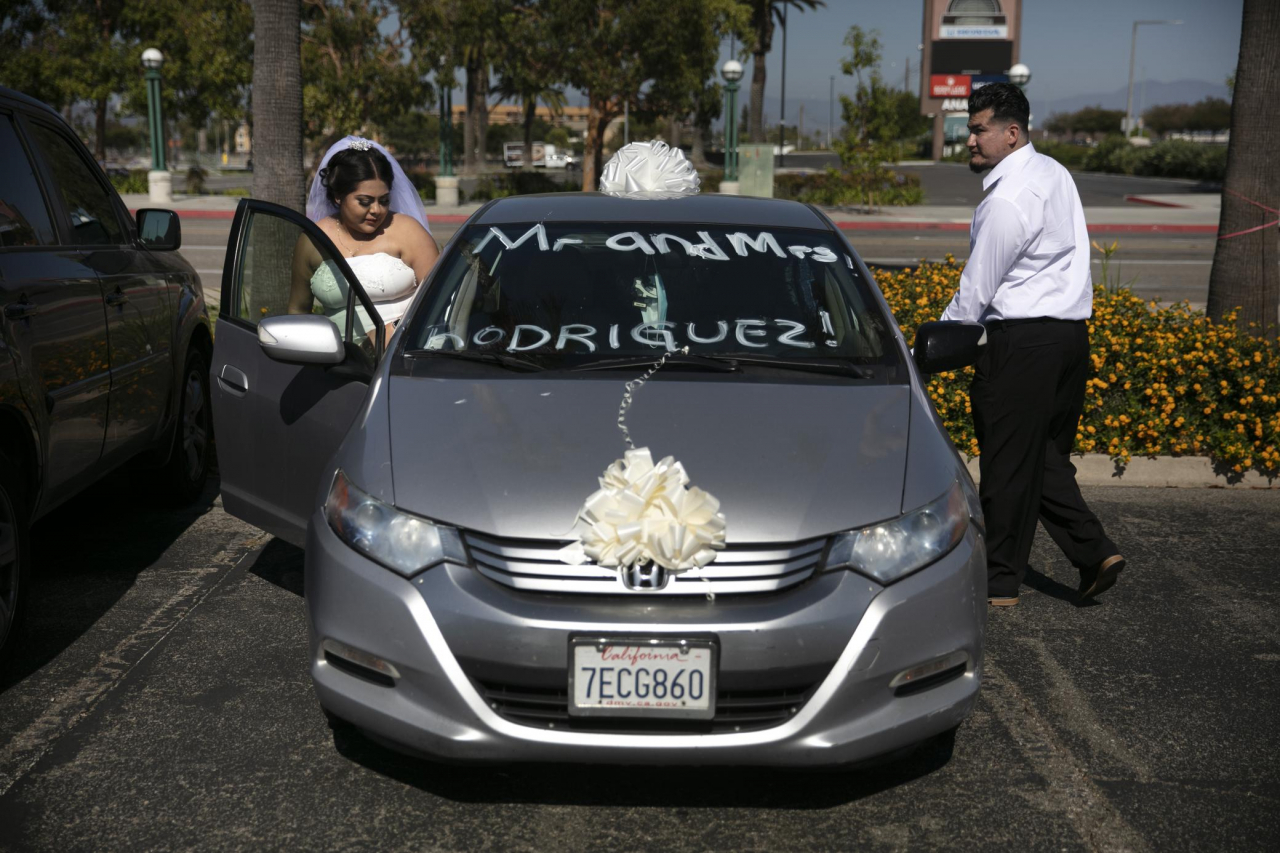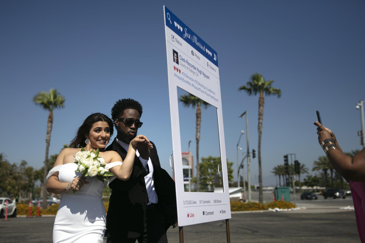 Dalla metà di aprile sono circa 100 le coppie che ogni giorno stringono i vincoli nuziali nell'area appositamente messa a disposizione dall'Ufficio del registro civile della contea di Orange. Alla cerimonia è ammesso un testimone per ogni coppia di sposi, mentre gli altri invitati devono attendere in auto.