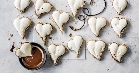 - Cuori: trasferire il composto in un sac à poche con beccuccio liscio di ca. 16 mm di Ø e formare 16 cuori su una placca foderata con carta da forno.