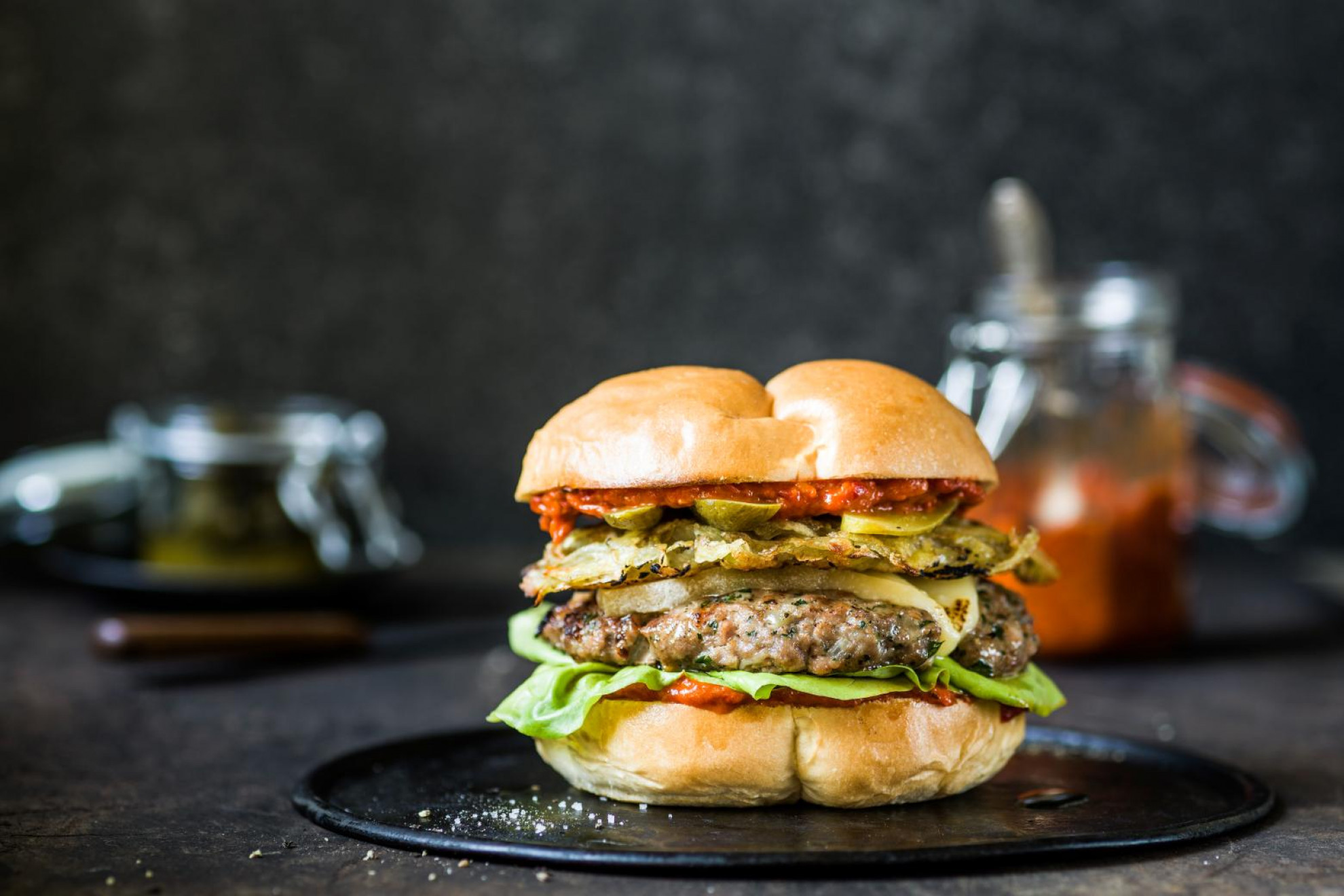 Suggerimento: l’ayvar è una salsa di peperoni che in molti paesi dell’Europa sudorientale viene spalmata fredda sul pane o servita con la carne. Per il burger si può utilizzare