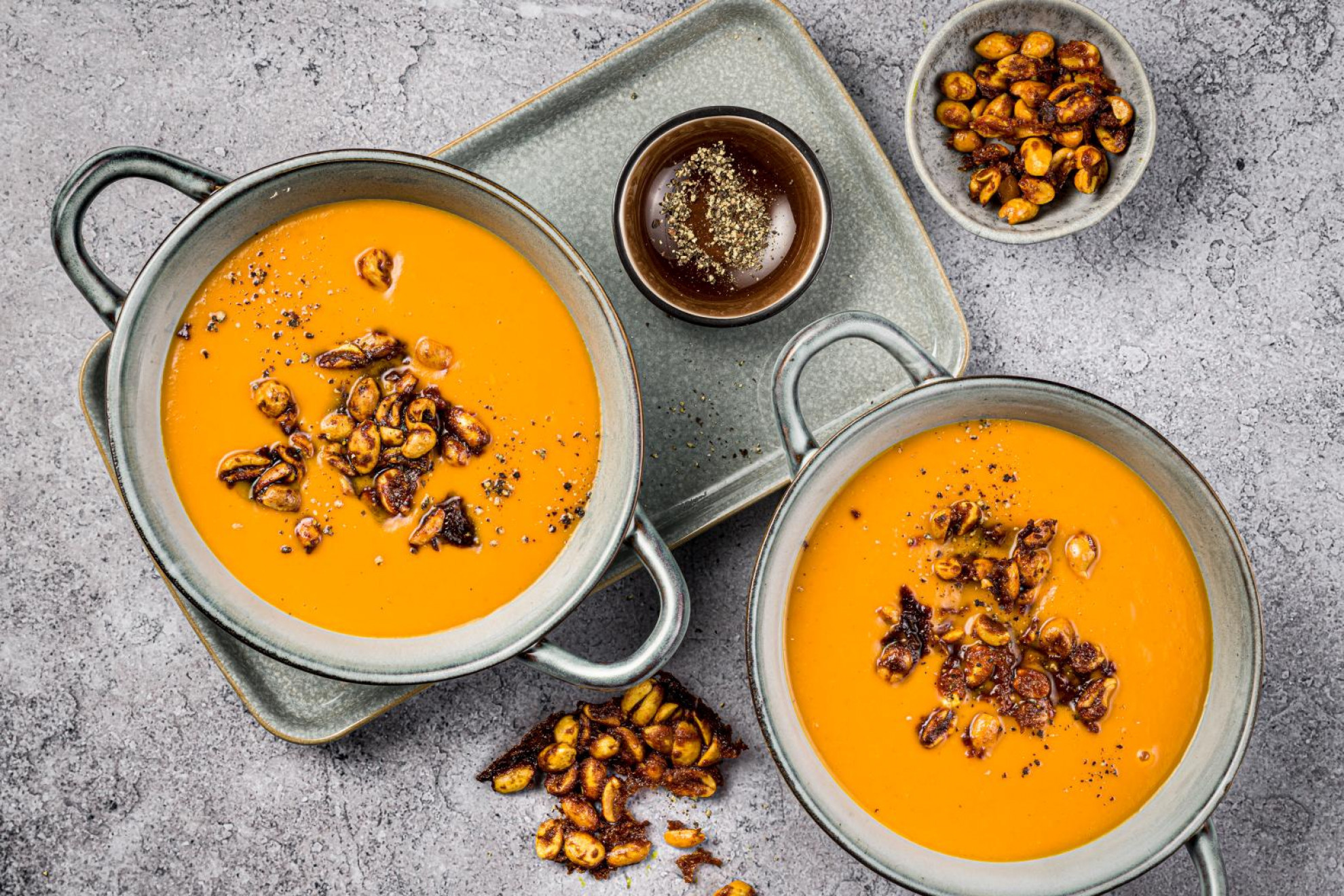 Un po’ di croccante non guasta mai. Guarnite la vostra crema di zucca con semi o frutta secca, ad esempio arachidi tostate (vedi ricetta a destra). Anche i crostini fatti in casa vanno benone e i golosi possono arricchire il piatto con chips di pancetta o di prosciutto crudo.