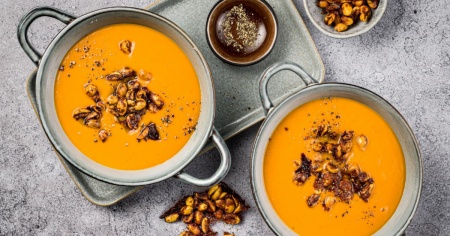 Non è una novità che si possa tuffare qualche patata nelle creme di zucca per addensarle. Ma avete mai provato con le patate dolci? Danno una sottile dolcezza alla zuppa. Lo stesso effetto lo hanno le carote e le mele, che potete rosolare con le cipolle.