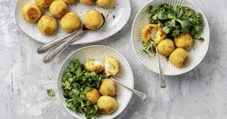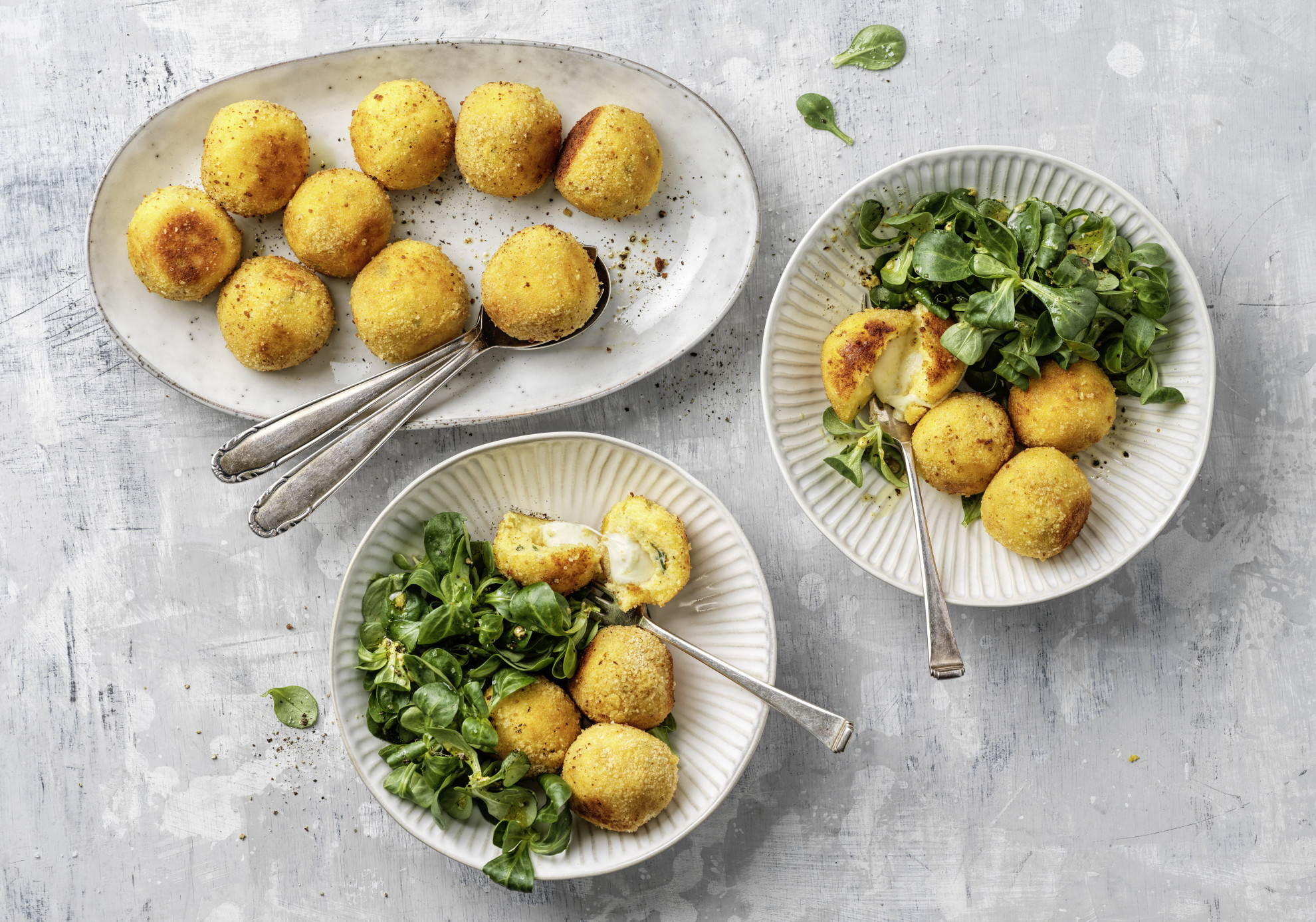 - Cottura: in una padella scaldare l'olio. Arrostire pochi arancini di polenta per volta per ca. 8 min. girandoli di tanto in tanto. Toglierli dal fuoco e lasciarli sgocciolare sulla carta da cucina.