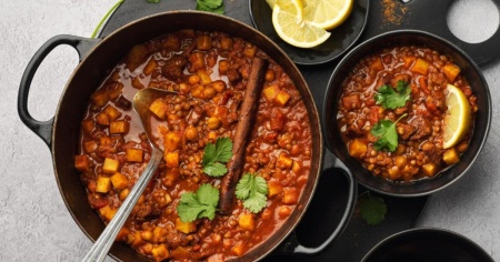 Suggerimento: d’estate utilizzare il sedano a coste al posto del sedano rapa e i pomodori freschi al posto di quelli in scatola.