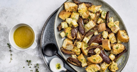 Come trasformi una semplice insalata verde in una croccante delizia? Facilissimo: con una manciata di crostini croccanti. E non devi neppure comprarli, li puoi fare da te. Prendi del pane raffermo e taglialo a dadini, poi fallo dorare in un tegame con un po’ di olio d’oliva e uno spicchio d’aglio pressato o delle erbe aromatiche.