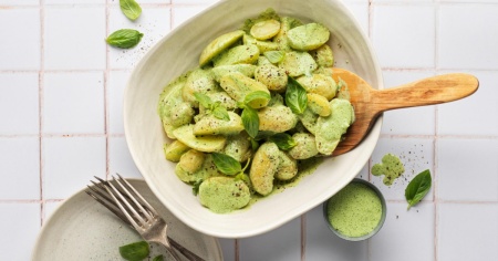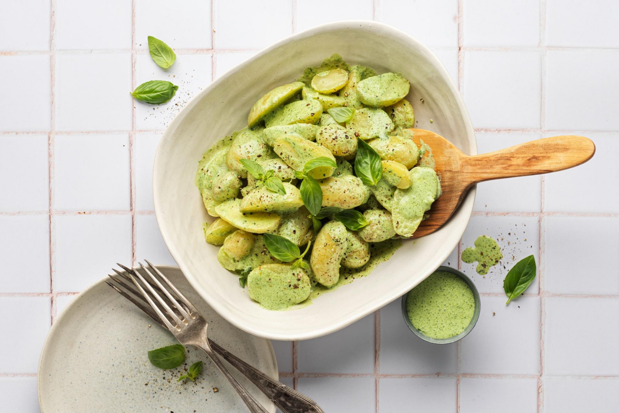 - Presentazione: unire la salsa e il basilico alle patate e mescolare.