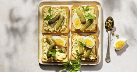 Per quelli classici, prendi una base di pane bianco per toast, su cui puoi spalmarne un primo strato di burro. Poi ci aggiungi del salmone, insalata di uova (vedi ricetta), roastbeef… e infine guarnisci a dovere, elevando una semplice tartina a canapé. Oppure ti avventuri su terreni inediti, magari con mousse di zucca e pickles asiatici.