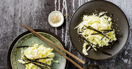 - Impiattamento: impiattare l’insalata e cospargere con l’alga nori e il sesamo.