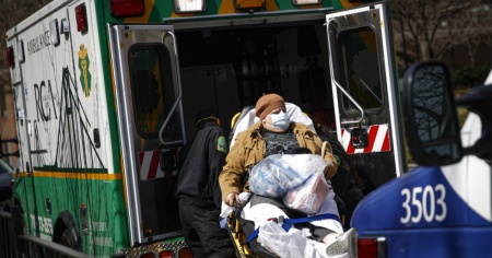 Una paziente portata via in ambulanza a New York