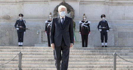 Solo anche il presidente Mattarella, che questa mattina si è ritualmente recato all'Altare della Patria a Roma per omaggiare il monumento al Milite ignoto. Con la scorta a distanza di sicurezza.
