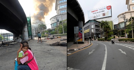 Quella mattina, le forze militari thailandesi passarono all’azione con i mezzi blindati, aprendosi un varco tra le barricate erette nel centro cittadino dalle Camicie rosse. Le proteste furono così spente, tra il fumo degli incendi, il sibilo dei proiettili e il sangue, decretando la “resa” dei manifestanti.