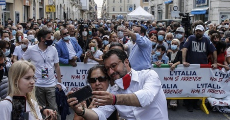 ROMA - Migliaia di persone, distanze sociali non rispettate, assembramenti e mascherine talvolta abbassate: sta facendo discutere, in Italia, la manifestazione organizzata in occasione della Festa della Repubblica dal centrodestra guidato da Matteo Salvini.