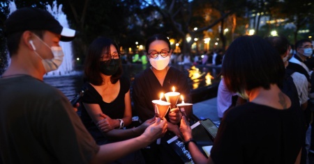 Malgrado i divieti, le candele sono state accese ovunque nella città, dai centri commerciali alle chiese, mentre una diretta in streaming da Victoria Park, il cuore della veglia negata dalla polizia, ha mostrato la presenza di centinaia di persone.