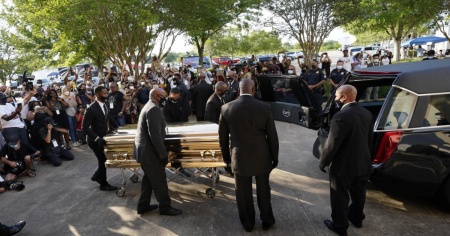 «George Floyd sta cambiando l'arco del futuro negli Usa. Non è morto invano. La sua vita sarà un'eredità permanente su come l'America e il Texas rispondono a questa tragedia», ha detto ai cronisti fuori della chiesa, annunciando che si incontrerà privatamente con la famiglia della vittima e la includerà nelle discussioni sulla riforma della polizia. Abbott donerà ai famigliari di George anche una bandiera del Texas che ha sventolato sul parlamento statale in suo onore.