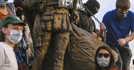 Tentano di abbattere la statua di un "conquistador": attivista anti razzista ferito a colpi d'arma da fuoco