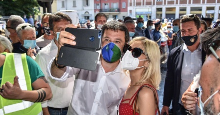 Salvini, che ieri ha ribadito la propria opinione di essere stufo delle distanze sociali dicendo «torniamo ad abbracciarci», si è recato oggi a Codogno per un comizio e per visitare la località diventata nota durante le prime apparizioni della pandemia di coronavirus in Italia. Infatti, il 21 febbraio è stato registrato qui il primo caso positivo.