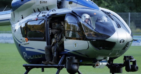 La ricerca dell'uomo, un tedesco di 31 anni, sta proseguendo da oltre 24 ore. È iniziata infatti domenica verso le 10, quando un residente ha chiamato la polizia dopo aver visto l'uomo equipaggiato in quel modo. All'arrivo dei quattro agenti, l'uomo è riuscito ad estrarre una pistola, minacciarli e derubarli, per poi dileguarsi nel bosco.