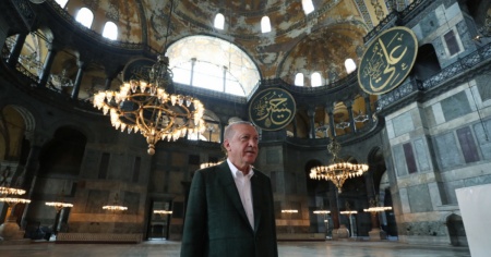 Kalin ha escluso l'impiego di luci laser oscuranti, ipotizzato nei giorni scorsi dai media locali, e assicurato che «non ci saranno danni ai mosaici, alle icone, al patrimonio storico e all'architettura dell'edificio». Il portavoce ha poi confermato che Erdogan sarà presente alla prima storica preghiera. Ieri, il capo dello Stato ha ispezionato i lavori di preparazione all'interno del monumento, riconvertito dopo 86 anni da museo in moschea. Santa Sofia è stata luogo di culto islamico per quasi 500 anni. Prima, per quasi un millennio, è stata una basilica cristiana.