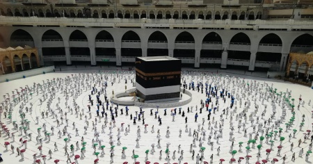 La televisione di Stato saudita ha mostrato le immagini di sparuti gruppi di fedeli che procedono a piedi, in fila indiana, con mascherine (obbligatorie) e guanti, attraverso le varie stazioni dello "hajj" (pellegrinaggio in arabo) fino a compiere la tradizionale rotazione attorno alla Kaaba, la venerata costruzione cubica contenente la Pietra Nera, luogo più sacro dell'Islam.