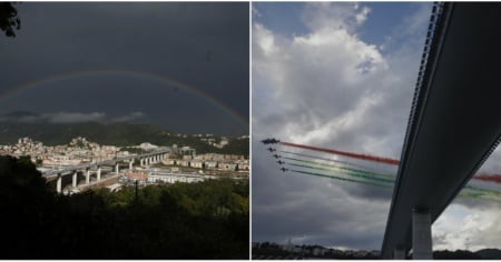 GENOVA - Pioveva a dirotto, poco meno di due anni fa, quando 43 persone persero la vita a causa del crollo del Ponte Morandi. E sembrava potesse essere così anche oggi per l'inaugurazione del nuovo ponte Genova San Giorgio. Invece a pochi minuti dall'inizio della cerimonia ecco, nel cielo ligure, spuntare un arcobaleno («Forse è una manifestazione simbolica, la tragedia con la pioggia, l'inaugurazione con l'arcobaleno» ha detto il governatore ligure Giovanni Toti). Poi le nuvole diradarsi, quasi a voler aprire la via alle Frecce Tricolori, giunte anch'esse a salutare il nuovo viadotto.