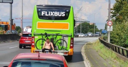BERLINO - È stato denunciato per pericoloso turbamento della circolazione stradale e per aver viaggiato senza biglietto un 28enne che mercoledì, ubriaco, circolava seduto a petto nudo sul retro di un Flixbus sull'autostrada nei pressi di Berlino. «Approfittatore senza titolo di trasporto ieri sull'A100», si è limitato a scrivere il servizio social della polizia su Twitter condividendo la foto dell'accaduto.