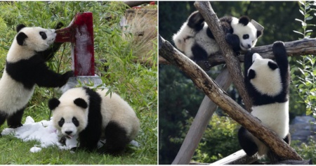 Per l'occasione hanno ricevuto in dono una grande torta gelato a forma di numero uno, realizzata con mele, patate dolci, succo di barbabietola e bambù e decorata con un po' di neve. E, guardando le foto, sembrano aver gradito molto il regalo.