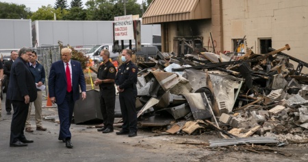 Il Presidente ha così potuto dare uno sguardo ravvicinato ai danni causati dai recenti disordini e saccheggi. Osservando le proprietà danneggiate dalla violenza, Trump ha definito i tumulti «antiamericani» e li ha paragonati a del «terrorismo interno», per poi promettere alle imprese aiuti per ricostruire e ripartire.