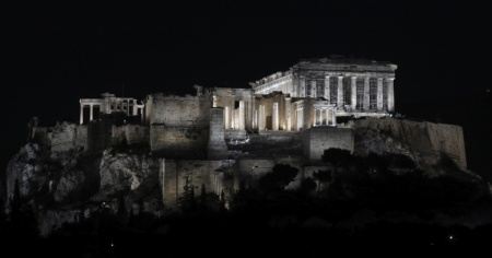 Sponsorizzata dalla fondazione Onassis, la nuova illuminazione esalta la geometria dei monumenti e della rocca su cui si ergono, usando luci LED a ridotto consumo energetico e di diverse intensità.