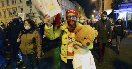 PARIGI - Centinaia di migliaia di persone giunte nella capitale polacca stanno prendendo parte alla "Marcia su Varsavia" indetta dal movimento femminile "Lo sciopero delle donne" in difesa del diritto d'aborto.