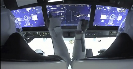 Attualmente sono in corso le operazioni per l'apertura dei portelli, al termine delle quali l'equipaggio della Crew Dragon potrà incontrare quello della Stazione Spaziale, con il comandante Sergey Ryzhikov e Sergey Kud-Sverchkov, entrambi russi, e l'americana Kate Rubins.