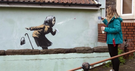 L'ultima opera del misterioro street artist è comparsa a Bristol ed è un ironico riferimento all'attualità
