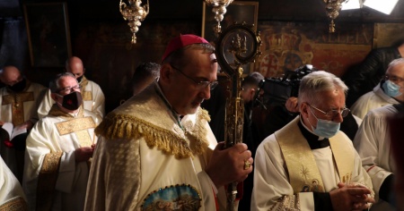 BETLEMME - Betlemme ha celebrato la Messa di mezzanotte in un Natale diverso da quello di tutti gli anni passati. Il Covid - che nei Territori Palestinesi è in crescita - ha imposto regole e restrizioni. Compreso il contingentamento dei fedeli a Santa Caterina - adiacente la Basilica della Natività - dove si è svolta la funzione, celebrata da monsignor Pierbattista Pizzaballa, nella sua prima volta da Patriarca di Gerusalemme.