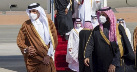 Bin Salman ha accolto l'emiro del Qatar, sceicco Tamim bin Hamad al-Thani, per la prima volta in Arabia Saudita dall'inizio della crisi, con un abbraccio, un'immagine rilanciata dai media locali.