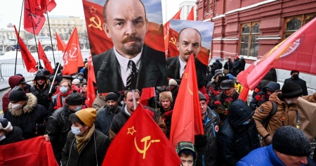 MOSCA - I sostenitori del partito comunista russo hanno commemorato oggi con un corteo e una manifestazione il 97° anniversario della morte di Vladimir Ilyich Ulyanov, noto principalmente come Lenin, nel centro di Mosca.