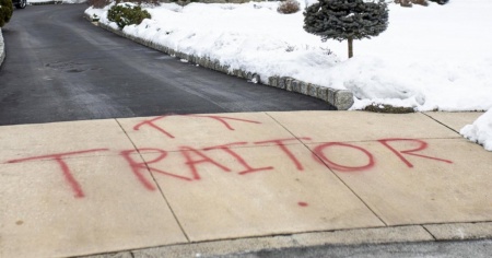 PHILADELPHIA - La scritta "TRADITORE", in rosso, davanti alla porta di casa.