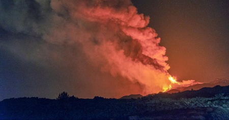 Dalle fontane di lava si solleva una nube di cenere lavica alta più di un chilometro
