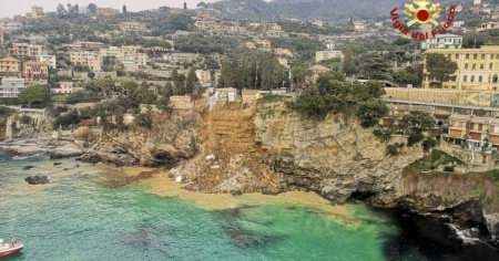 GENOVA - È franata in mare una porzione del Cimitero di Camogli, con centinaia di bare che sono finite in acqua.