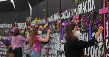 Sulla barriera metallica alta tre metri, che circonda la sede del governo messicana, sono stati dipinti i nomi di centinaia di donne, uccise nel corso dell'anno passato. La scritta «Vittime di femminicidio» campeggia sulla parte più alta, mentre attiviste e persone comuni hanno aggiunto fiori, in omaggio di tutte le vittime.