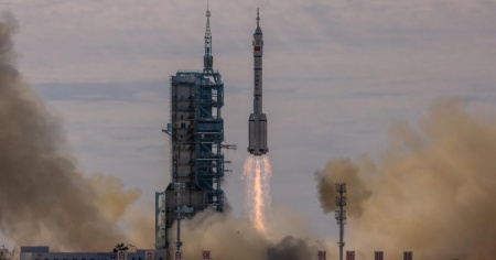 Il razzo Long March-2F, con i tre astronauti a bordo della navicella Shenzhou-12, è decollato alle 9.22 locali (le 3.22 in Svizzera) dal centro di lancio di Jiuquan nel deserto del Gobi.