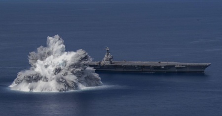 La portaerei USS Gerald R. Ford è stata messa alla prova con una potente esplosione