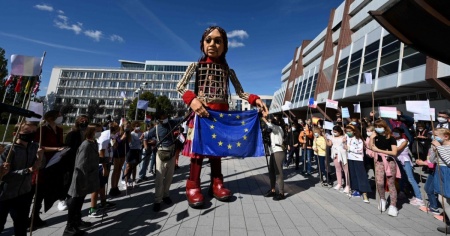 STRASBURGO - Dopo aver percorso già migliaia di chilometri in diversi Paesi, Amal è arrivata al Consiglio d'Europa. La marionetta gigante che rappresenta una bambina siriana di 9 anni, senza madre e in fuga dalla guerra, è stata accolta da numerosi parlamentari, e non solo.