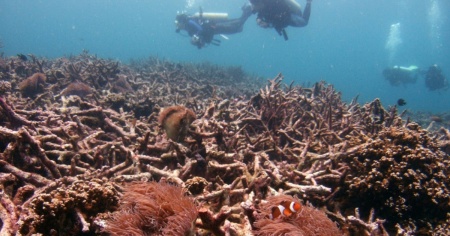 Gli oceani assorbono oltre il 90% del calore in eccesso causato dalle emissioni di gas serra, proteggendo le superfici terrestri ma allo stesso tempo alzando la temperatura delle acque e spingendo così molte specie di coralli oltre i loro limiti di tolleranza. Un singolo cosiddetto evento di 'sbiancamento' nel 1998 causato dal riscaldamento delle acque ha spazzato via l'8% di tutti i coralli. Le barriere coralline coprono solo una piccola parte del fondo oceanico, lo 0,2%, ma ospitano almeno un quarto di tutti gli animali e le piante marine.