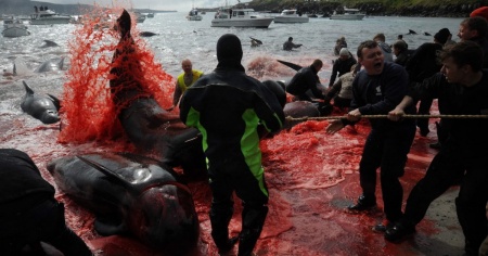 ISOLE FAROE - Lo scorso 12 settembre un branco di 1.428 delfini sono stati uccisi alle isole Faroe. Dopo neanche dieci giorni, nello stesso luogo, si è consumata l'uccisione di 52 balene pilota. Un altro sanguinoso tributo sull’altare della "Grindadrap" la tradizionale caccia di balene e cetacei nell’arcipelago delle isole Faroe, situate nell'Oceano Atlantico e appartenente alla Danimarca.