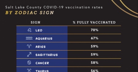 L'analisi, ha spiegato il portavoce del dipartimento Nicholas Rupp al Salt Lake City Tribune, è stata possibile perché l'ufficio ha ottenuto le date di nascita anonime dai dati sulle vaccinazioni nella contea. Così si è potuto risalire a come i vaccini sono stati distribuiti tra i 12 segni astrologici. Poi le cifre sono state confrontate con le stime nazionali per la quota della popolazione complessiva rappresentata da ciascun segno.